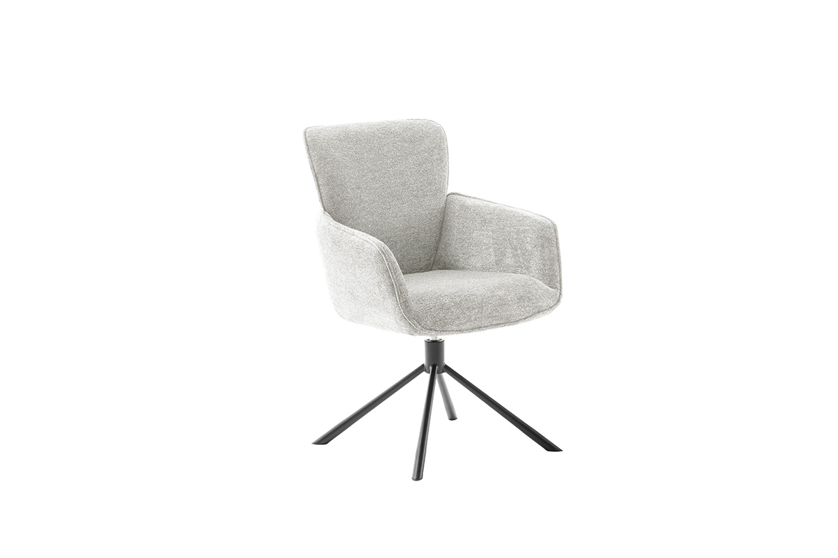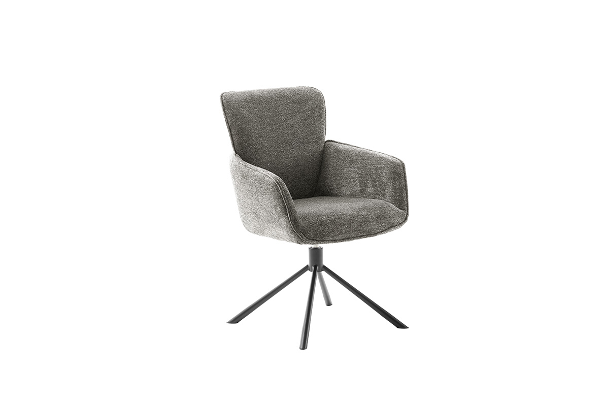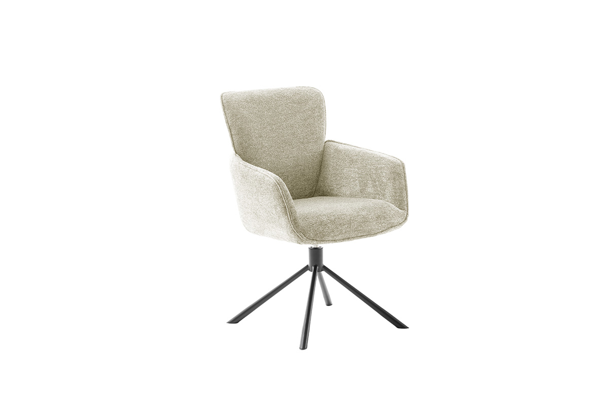 Stabilna podstawa z czarnego, matowego metalu nadaje mu nowoczesny wygląd. Tapicerowane wysokiej jakości tkaniną, gwarantuje komfort użytkowania.