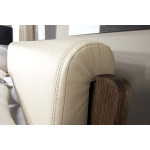 Łóżko sypialniane z pojemnikiem i tapicerowanym wezgłowiem, pod materac 180 x 200. Łóżko posiada w starndardzie stelaż na metalowej ramie z gazowymi podnośnikami. Stelaż łóżka posiada standardowo 34 listwy sprężynujące. Wezgłowie łóżka tapicerowane ecoskórą w kolorze ecru.