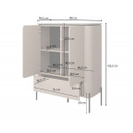 Świetnie sprawdzi się zarówno w salonie, jadalni, jak i sypialni, oferując dużo miejsca do przechowywania przy zachowaniu eleganckiego wyglądu.