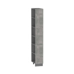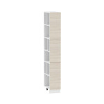 Szafka kuchenna stojąca, wysoka, z półkami, dostawiana do boku szafki wysokiej typu słupek, szafka na nóżkach regulowanych. Boki szafki wykończone panelami w kolorze frontów.