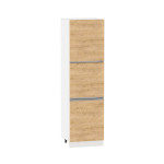 Szafka kuchenna stojąca, wysoka, słupek, 3 fronty uniwersalne, montowane jako lewe lub prawe, za drzwiami półki, szafka na nóżkach regulowanych.
