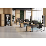 Dzięki brakowi tradycyjnych uchwytów i zastosowaniu wygodnego systemu podchwytu, całość prezentuje się minimalistycznie i elegancko. To praktyczne rozwiązanie do przechowywania dokumentów i drobiazgów w uporządkowany sposób.