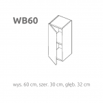 - WB 60 P/L - szafka wisząca pionowa z 1 drzwiczkami otwieranymi na prawą lub lewą stronę, za drzwiczkami 1 półka. Szafka z frontem w laminacie. Wymiary: wysokość 60 cm, szerokość 30 cm, głębokość 32 cm