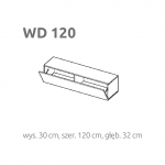 - WD 120 - szafka wisząca pozioma z 1 frontem otwieranym do dołu, na ogranicznikach gazowych, wewnątrz 1 przegroda. Szafka z frontem w akrylu. Wymiary: wysokość 30 cm, szerokość 120 cm, głębokość 32 cm