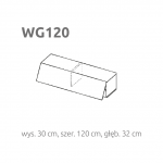 - WG 120 - szafka wisząca pozioma z 1 frontem otwieranym do góry, na podnośnikach gazowych, wewnątrz 1 przegroda. Szafka z frontem w laminacie. Wymiary: wysokość 30 cm, szerokość 120 cm, głębokość 32 cm