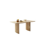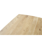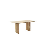 Ten wyjątkowy stół wykonany został z litego drewna akacjowego, lakierowanego w naturalnym odcieniu, który pięknie eksponuje unikalne usłojenie drewna. Blat o grubości 3,5 cm zapewnia trwałość i stabilność, a jednocześnie nadaje meblowi solidny i szlachetny wygląd.