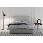 W standardzie - Dolna skrzynia łóżka pełni rolę pojemnika na pościel, do którego dostęp uzyskujemy unosząc materace do góry. Standardowy materac bazowy jest wykonywany ze sprężyn bonelowych oraz pianki tapicerskiej typu T-25. Na materacu bazowym umieszczono materac nawierzchniowy (Topper 5cm) wykonany z pianki tapicerskiej