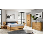 Z dala od rustykalnego uroku przeszłości w kierunku nowoczesnego, prostego języka designu, połączonego z perfekcyjnym wykonaniem aż do najmniejszego detalu – oto Sypialnia Denver. Ten model zachwyca nowoczesnym, intensywnym materiałowo wzornictwem z zastosowaniem litego drewna dębowego i naturalnych materiałów. Miękkie szczotkowane powierzchnie podkreślają wyrazistość litego drewna i nadają przytulności oraz wartości. Wygodne łóżko jest przekonujące a dodatkowa przestrzeń do przechowywania pod łóżkiem zapewnia maksymalne wykorzystanie wolnego miejsca w sypialni. Inne akcesoria które można zamontować w szafie są dopełnieniem tego modelu. Denver Sypialnia pozwoli ci uzyskać spójne przytulne wrażenie wnętrza twojej nowej sypialni.