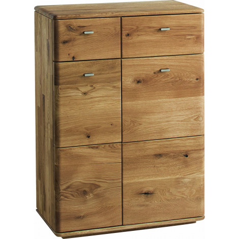 Garderoba Denver wykonana z litego dębu jest prezentem od natury do Twojego wejścia. Wysokiej jakości drewno zostało uszlachetnione olejem który stawia na pierwszym planie autentyczne właściwości materiałowe drewna. Ciepły naturalny kolor drewna emanuje przyjazną atmosferą, a sęki i szczotkowana powierzchnia nadają mocne akcenty. W połączeniu z wyraźnym językiem stylistyki i detalami, zestaw nie tylko dobrze wygląda w rustykalnym otoczeniu, ale także w nowoczesnych domach.