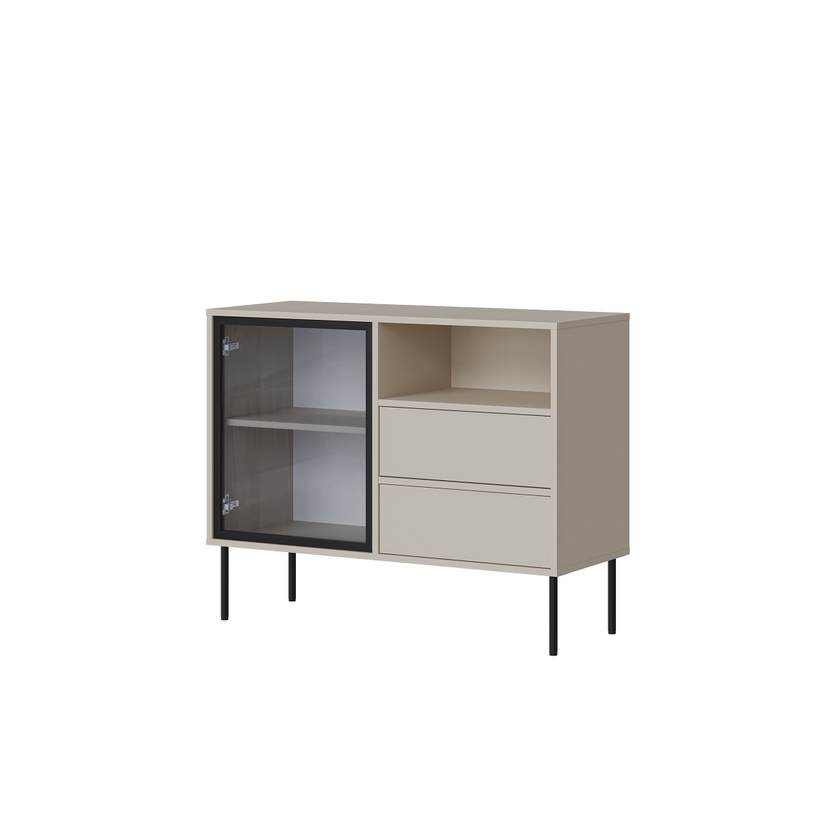 Kompaktowa i funkcjonalna komoda z systemu Domi, łącząca nowoczesny design z praktycznymi rozwiązaniami. Wyposażona w jedne drzwi oraz dwie pojemne szuflady, doskonale sprawdzi się w przechowywaniu niezbędnych akcesoriów. Prosta forma, eleganckie wykończenie oraz system PUSH TO OPEN nadają jej minimalistyczny, a zarazem stylowy charakter.