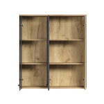 Mebel został zaprojektowany z myślą o oszczędności miejsca – montowany na ścianie, pozwala efektownie wyeksponować dekoracje, zastawę lub ulubione pamiątki. Przeszklony front z hartowanego szkła nadaje konstrukcji lekkości i nowoczesnego wyglądu, a zamknięte półki z płyty laminowanej zapewniają praktyczną przestrzeń do przechowywania.