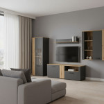 Witryna wisząca ESTEBAN 2D1W grafit / dąb evok to połączenie nowoczesnej elegancji i funkcjonalności, które doskonale uzupełni wystrój salonu, jadalni lub pokoju dziennego. Kontrast głębokiego grafitu z ciepłym odcieniem dębu evok tworzy harmonijną kompozycję, nadając wnętrzu przytulny, a zarazem stylowy charakter.