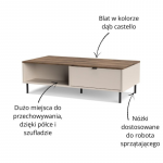 Marzysz o salonie, w którym wszystko ma swoje miejsce? Ława EVO spełni Twoje oczekiwania! Jej minimalistyczny design, podkreślony delikatnym odcieniem kaszmiru, doskonale wpisuje się w nowoczesne wnętrza. Blat w kolorze dąb castello, imitujący naturalne drewno, doda ciepła i przytulności.