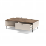 Dzięki przemyślanej konstrukcji z półkami otwartymi i szufladami zyskasz dodatkowe miejsce do przechowywania ulubionych książek, pilotów czy innych drobiazgów, co pozwoli Ci uporządkować przestrzeń i cieszyć się większą swobodą.
