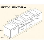 Szafka RTV: 48/194/39, z lewej i prawej strony klapy otwierane do dołu, na środku dwie szuflady i półka, fronty w wysokim połysku, szklany blat ( 8 mm szkło)