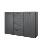 Komoda posiada dwoje drzwi oraz cztery szuflady.