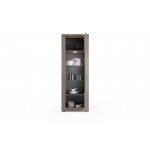 Stylowa witryna z jednymi drzwiami to idealne rozwiązanie do wyeksponowania ulubionych dekoracji, porcelany lub szkła. Korpus mebla wykonany z laminatu w kolorze szarobrązowym, uzupełniony blatem w dekorze dąb Mercure, nadaje całości elegancki, a zarazem ciepły charakter.