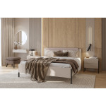 Nowoczesne i eleganckie łóżko Jukon S o szerokości 160 cm to idealna propozycja do stylowej sypialni. Wykonane w modnym kolorze kaszmir, doskonale komponuje się zarówno z jasnymi, jak i ciemniejszymi dodatkami. Czarne metalowe nogi dodają konstrukcji lekkości i industrialnego charakteru, a miękki, tapicerowany zagłówek w stonowanym odcieniu zapewnia wygodne oparcie podczas wypoczynku. Dodatkowym atutem jest praktyczny pojemnik na pościel, który zwiększa funkcjonalność mebla.