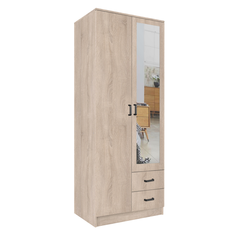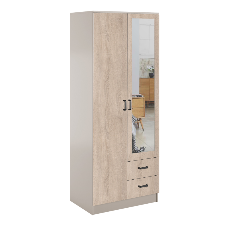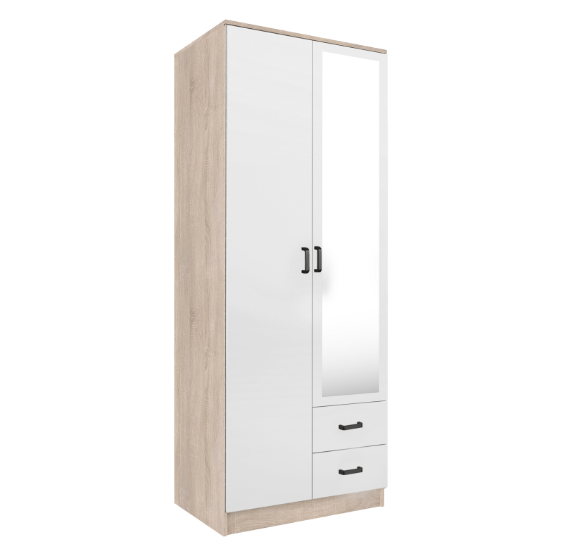 Szafa dwudrzwiowa z lustrem i dwiema szufladami