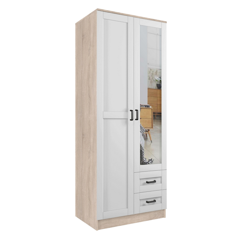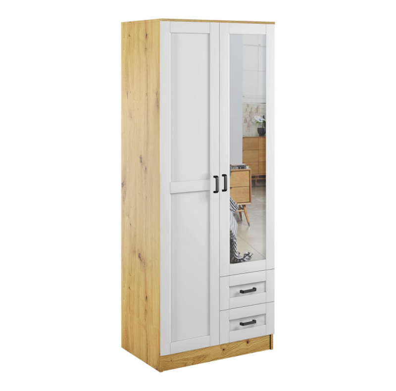 Szafa dwudrzwiowa z lustrem i dwiema szufladami