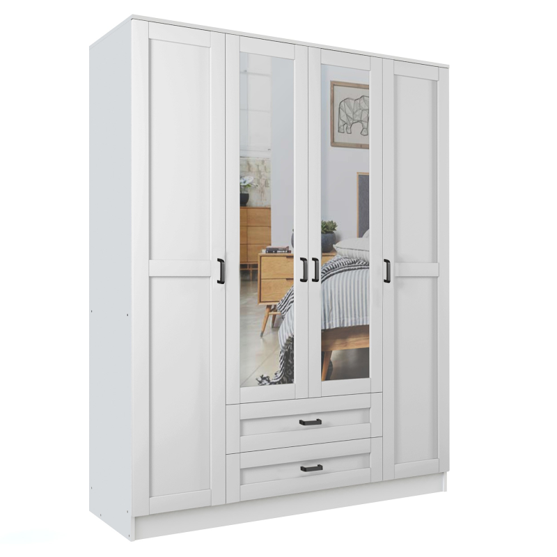 Szafa czterodrzwiowa z lustrem i szufladami – elegancja i funkcjonalność w jednym