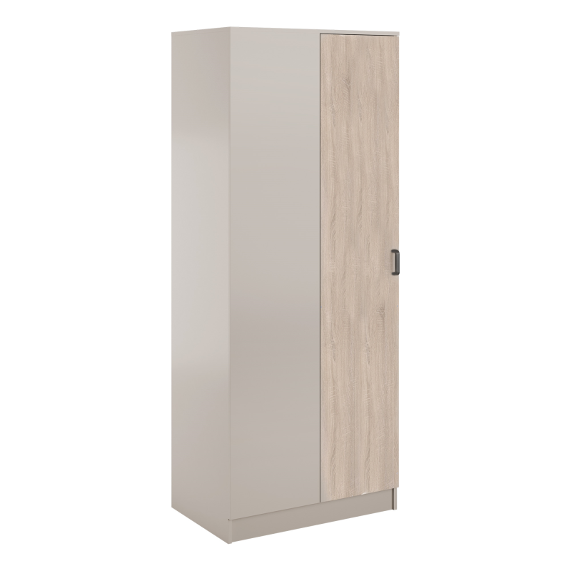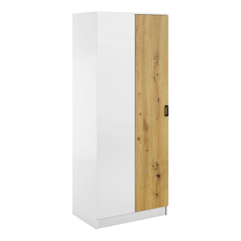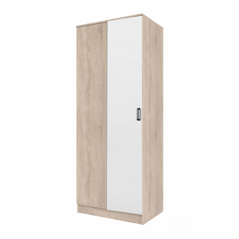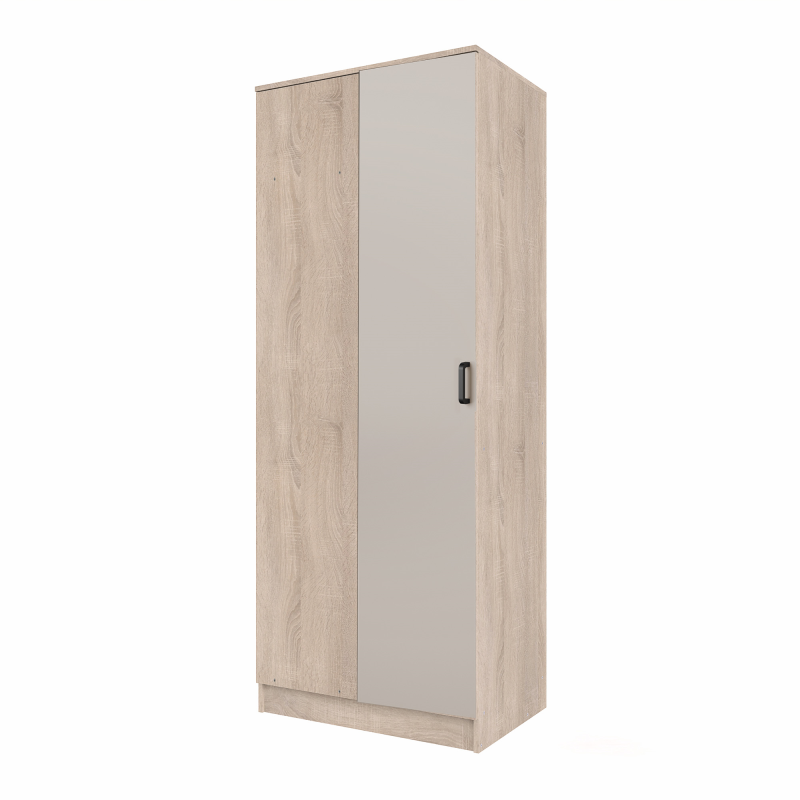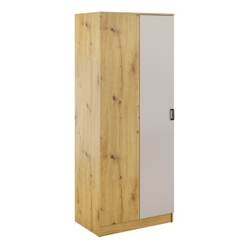 Szafa dostępna jest w wersji lewostronnej lub prawostronnej, co umożliwia idealne dopasowanie do układu wnętrza. Wewnątrz znajduje się drążek na ubrania oraz praktyczna półka, która zapewnia wygodną organizację odzieży, akcesoriów i innych rzeczy codziennego użytku.