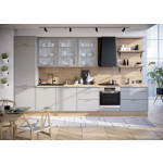 Korpusy szafek wiszących wykonane z płyty wiórowej laminowanej grubości 16 mm w kolorze białym lub szarym stalowym. Głębokość korpusów to 30 cm i 56 cm. Szafki wiszące posiadają zawieszki regulowane w dwóch płaszczyznach i półki zabezpieczone są przed wysunięciem.