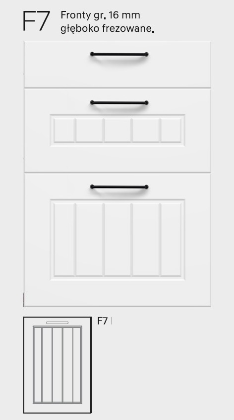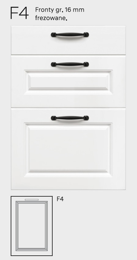 Fronty klasyczne F4, F7, F8 gr. 16 mm frezowane, wykonane z płyty MDF foliowanej, dostępne w wielu kolorach do wyboru.