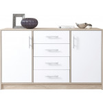 Komoda posiada dwoje drzwi oraz cztery szuflady.