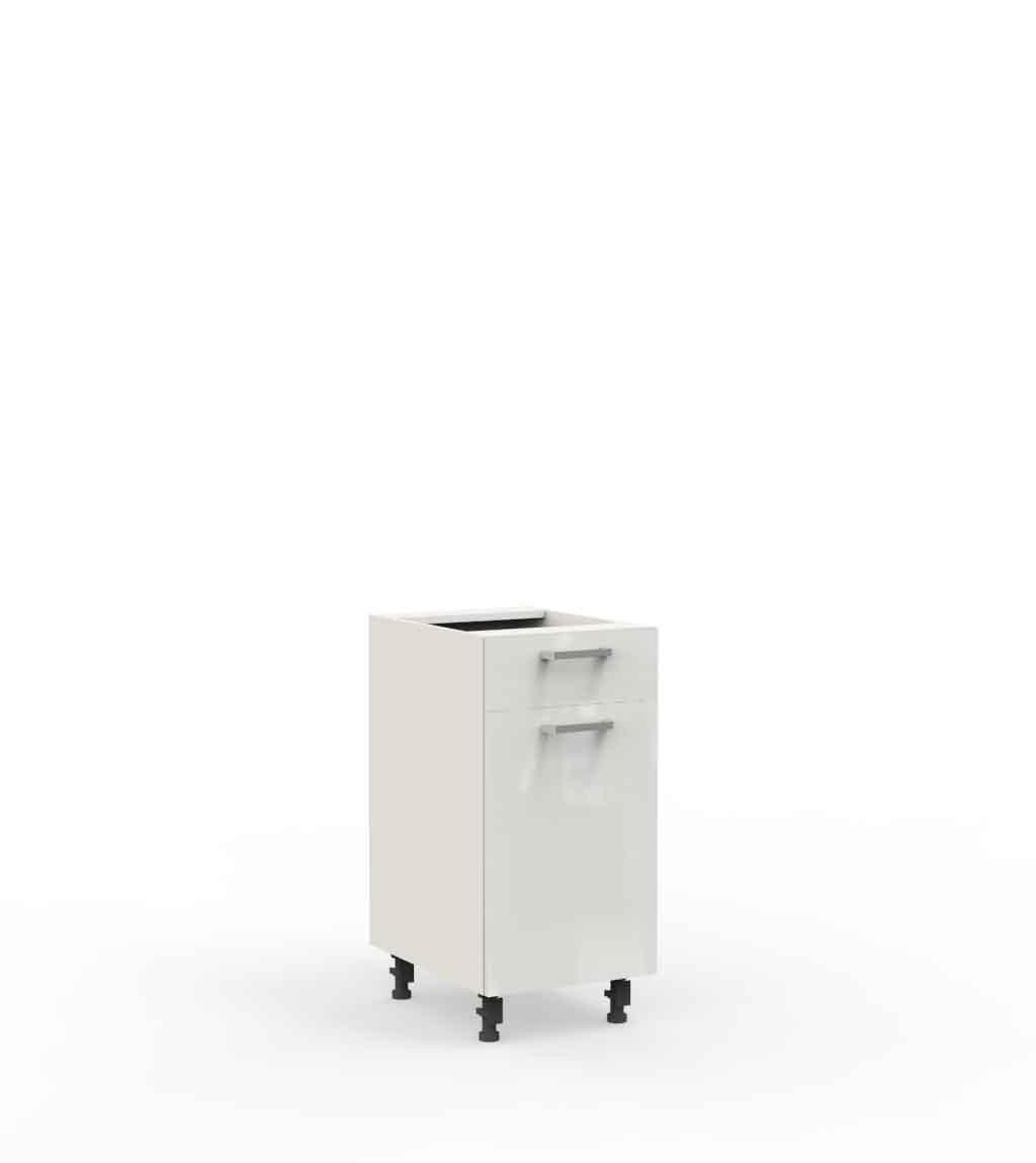 Szafka kuchenna stojąca z 1 drzwiami i 1 szufladą, doskonała do przechowywania sztućców, drobnych akcesoriów kuchennych, garnków i produktów spożywczych, funkcjonalna forma i duża pojemność mebla. Szerokość 40 cm. Szafka sprzedawana bez blatu.