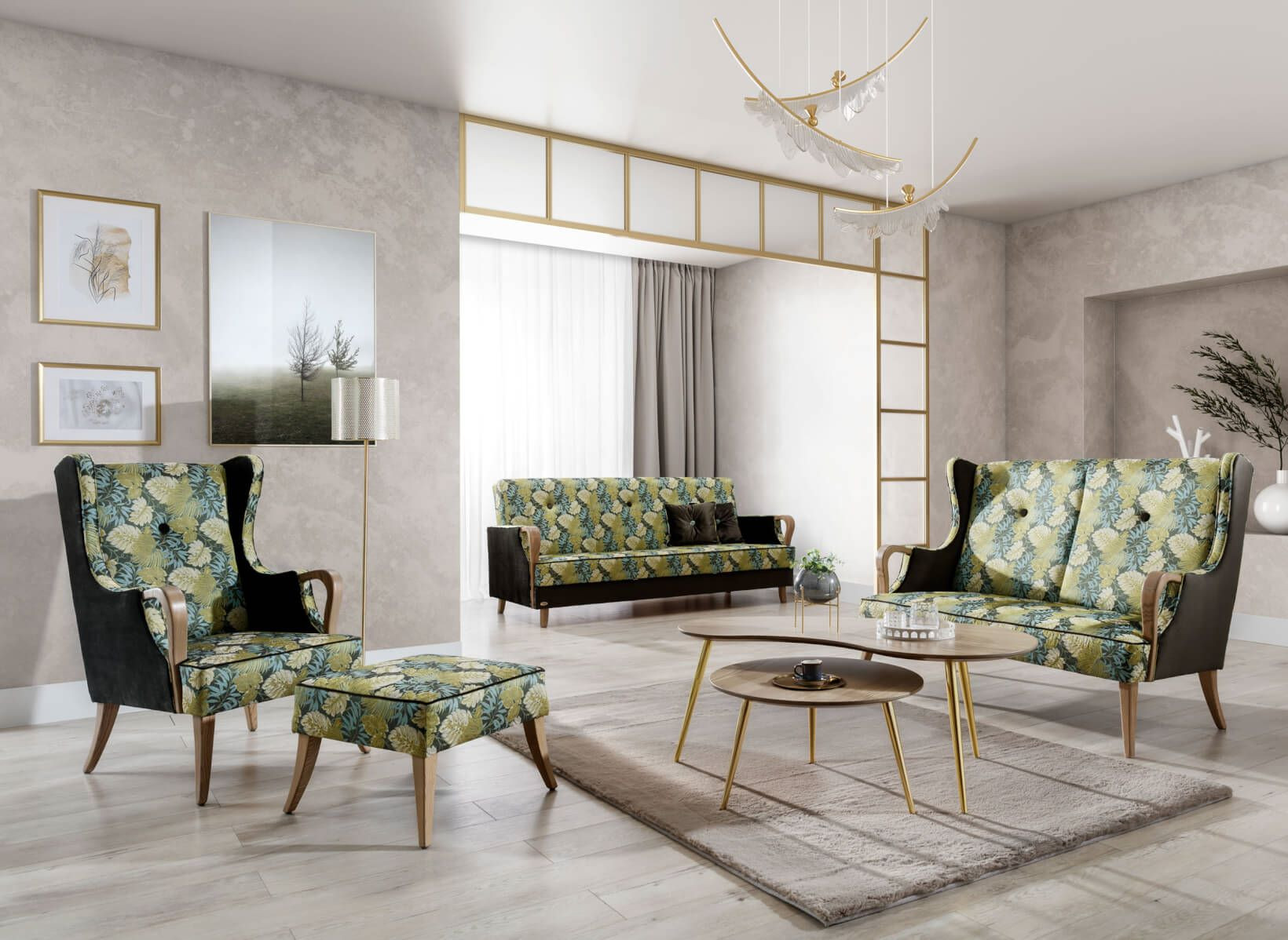 Kolekcja MILANO składa się z fotela, pufy, wersalki oraz sofy. Meble o charakterystycznych, wygiętych na zewnątrz nogach. Bardzo ozdobny zestaw, idealny jako ozdoba każdego salony. Kolekcja dostępna w tkaninach ze wzornika UNIMEBEL, który zawiera starannie wyselekcjonowane wzory. Drewniane elementy dostępne w kolorach ze wzornika wybarwień UNIMEBEL.