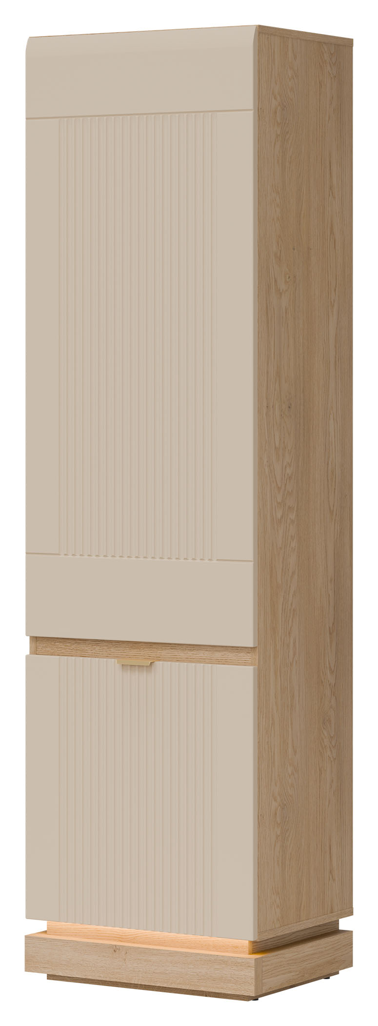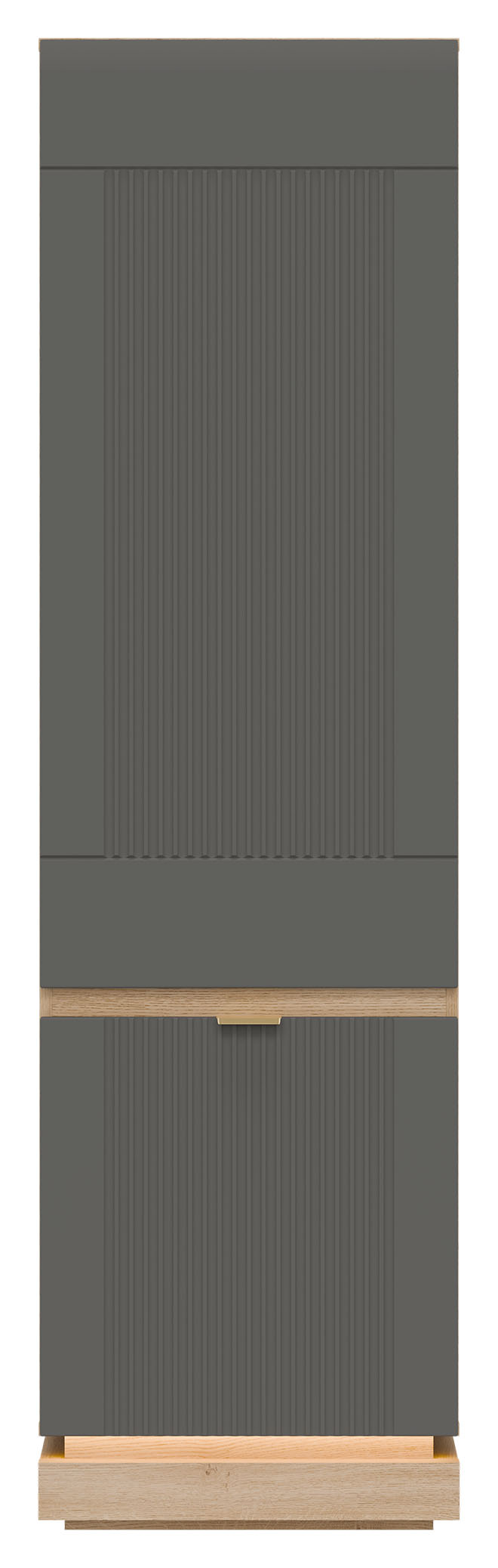 Szafka MILTON ML07 to elegancka i funkcjonalna propozycja z kolekcji MILTON, idealna do nowoczesnych wnętrz, gdzie przestrzeń i estetyka tworzą spójną całość. Wysoka, zamykana konstrukcja została zaprojektowana z myślą o maksymalnej pojemności – wewnętrzne półki doskonale sprawdzą się do przechowywania książek, dokumentów czy codziennych akcesoriów, zapewniając porządek i łatwy dostęp do zawartości. Fronty wykonane z matowego MDF, dostępne w kilku stonowanych wariantach kolorystycznych, zdobi subtelne frezowanie, które podkreśla nowoczesny, ale i ponadczasowy charakter mebla. Stylowe uchwyty w kolorze złotym dodają całości eleganckiego wykończenia. Korpus w dekorze dąb cremona torro wprowadza naturalne ciepło do aranżacji i harmonijnie współgra z kolorystyką frontów, tworząc nowoczesną, a zarazem przytulną kompozycję. Szafka została wyposażona w system cichego domyku, co zapewnia wyjątkowy komfort użytkowania. To idealny wybór do salonu, gabinetu czy przedpokoju – wszędzie tam, gdzie liczy się styl, funkcjonalność i wysoka jakość wykonania.