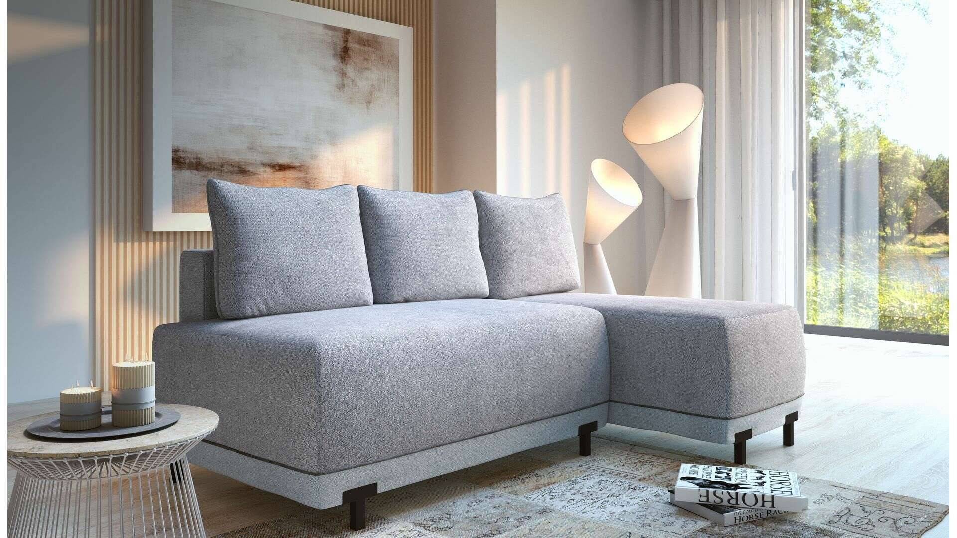 Narożnik posiada komfortową funkcję spania oraz pojemnik na pościel.