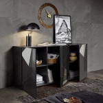 Vittoria komoda 3 drzwiowa lakier antracyt z nadrukiem i lusterkiem 202350-05