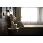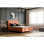 W standardzie - Dolna skrzynia łóżka pełni rolę pojemnika na pościel, do którego dostęp uzyskujemy unosząc materace do góry. Standardowy materac bazowy jest wykonywany ze sprężyn bonelowych oraz pianki tapicerskiej typu T-25. Na materacu bazowym umieszczono materac nawierzchniowy (Topper 5cm) wykonany z pianki tapicerskiej typu T-25.