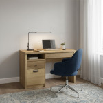 Biurko 1d2s/120 Denzel to propozycja idealna do nowoczesnego pokoju młodzieżowego lub domowego biura. Połączenie dekorów dąb cremona i dąb lefkas wprowadza przytulny, naturalny klimat, a prosta, stabilna forma podkreśla loftowy charakter kolekcji. Dwa rodzaje metalowych uchwytów dodają całości industrialnego wyrazu. Szuflady w kontrastowym odcieniu dąb lefkas tworzą ciekawy akcent, który ożywia przestrzeń. To biurko młodzieżowe, które łączy styl z praktycznością — idealne do nauki, pracy i tworzenia własnej przestrzeni.