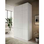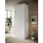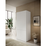 Nowoczesna szafa z frezowaniami pionowymi, elegancka wpasuje się do każdego nowoczesnego wnętrza.Do szafy można domówić szafę 45, regał, RTV na 150 i 200cm oraz komody na150cm i 200cm ławe, witrynę. Szafa składa się z następujący elementów;