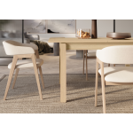 Wykonany z wysokiej jakości materiałów, wyposażony w delikatne, dębowe nogi oraz płynny i precyzyjny mechanizm rozkładania, zapewnia komfort użytkowania na co dzień. Zaokrąglone detale dodają mu subtelnego uroku, a ponadczasowa kolorystyka sprawia, że doskonale wpisuje się w różne aranżacje wnętrz.
