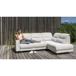 Poduszki oparciowe są podnoszone, dzięki temu zwiększamy wysokość oparcia i uzyskujemy wysoki komfort użytkowania. Kąt oparcia w meblu jest wyprofilowany w taki sposób, by dawać możliwość łagodnego podparcia pleców.