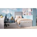 W standardzie - Dolna skrzynia łóżka pełni rolę pojemnika na pościel, do którego dostęp uzyskujemy unosząc materace do góry. Standardowy materac bazowy jest wykonywany ze sprężyn bonelowych oraz pianki tapicerskiej typu T-25. Na materacu bazowym umieszczono materac nawierzchniowy (Topper 5cm) wykonany z pianki tapicerskiej