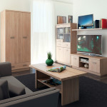 Komoda TOP MIX zawiera w sobie szuflady i tradycyjne półki. Prosta forma przypadnie do gustu miłośnikom minimalizmu. Dostępna jest w dwóch wersjach kolorystycznych – dąb sonoma oraz biały w połączeniu z blatem imitującym drewno. Dedykowana jest przede wszystkim dla pokoju dziennego, przedpokoju lub sypialni. Lecz sprawdzi się również w garderobie bądź pokoju młodzieżowym.