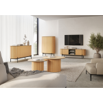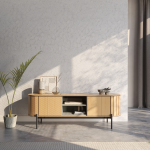 Szafka RTV to nie tylko funkcjonalny mebel, ale także elegancki element wystroju wnętrza. RT-06 dzięki swojej przestronności, umożliwia przechowywanie różnych akcesoriów i sprzętu multimedialnego, a także dodaje stylu i klasy Twojemu salonowi. Szafka RTV z kolekcji ROTTO charakteryzują się nowoczesnym designem, który doskonale wpisuje się w aktualne trendy wnętrzarskie. Szeroka powierzchnia umożliwia stabilne umieszczenie telewizora, a eleganckie wykończenia dodają pomieszczeniu wyjątkowego charakteru. Taki mebel staje się centralnym punktem salonu, przyciągając wzrok i podkreślając styl wnętrza.