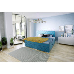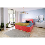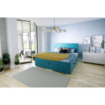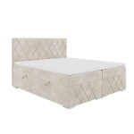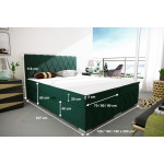 W standardzie - Dolna skrzynia łóżka pełni rolę pojemnika na pościel, do którego dostęp uzyskujemy unosząc materace do góry. Standardowy materac bazowy jest wykonywany ze sprężyn bonelowych oraz pianki tapicerskiej typu T-25. Na materacu bazowym umieszczono materac nawierzchniowy (Topper 5cm) wykonany z pianki tapicerskiej Visco