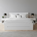 Łóżko z kolekcji mebli systemowych " SELENE" to połączenie funkcjonalności z oryginalnym designem i lekkością jaką nadają fronty w białym wysokim połysku.
