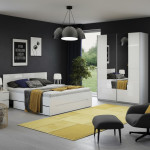Śnieżnobiały połysk frontów powiększa każde pomieszczenie zarówno sypialnię jak i pokój młodzieżowy.