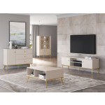 Stolik kawowy Selgin 07 to mebel idealny do pokoju dziennego. Ustawiony w centralnej części salonu stanie się nieodzownym elementem Twojego wnętrza. Postawisz na nim filiżankę kawy, odłożysz czytaną gazetę, a pilot od telewizora będziesz mieć zawsze pod ręką. Szeroki blat pozwoli wyeksponować na przykład Twoje ulubione albumy. Dwie pojemne wnęki pod blatem to świetne miejsce na przechowanie książek, świec czy małych rzeźb. Bryła mebla posadowiona jest na stabilnych, wysokich nóżkach wykonanych z wytrzymałego metalu. Podwójnie galwanizowane nogi w złotym wybarwieniu gwarantują wieloletnie, wygodne użytkowanie. Meble z kolekcji Selgin łączą w sobie wysoką funkcjonalność z zachwycającym designem.