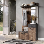 stylistyka drewna postarzanego i betonu korpus;melamina szara matera fronty ;dąb tobacco-brąz/ melamina szara matera Zestaw Smile charakteryzuje się subtelnym stylem vintage z uchwytami w antycznym stylu. Meble w paczkach do samodzielnego montażu. |