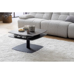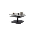 Stolik kawowy Susaki to elegancki i nowoczesny mebel, który wyróżnia się nie tylko designem, ale także funkcjonalnością. Blat wykonany został z połączenia szkła oraz ceramiki w stylowym odcieniu antracytu, co nadaje całości szlachetny, matowy wygląd i wyjątkową trwałość. Stelaż z metalu lakierowanego na czarno w matowym wykończeniu gwarantuje stabilność i podkreśla nowoczesny charakter stolika.