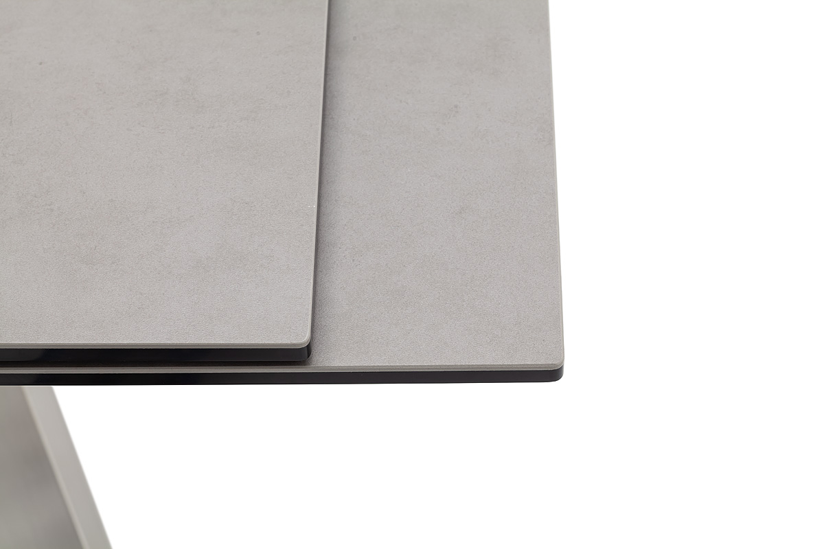 Elegancki, duży stół do jadalni, którego blat wykonany został z ceramiki, a podstawa z metalu. Łatwy w utrzymaniu czystości blat, zaprojektowany z odpornej na ciepło ceramiki będzie służył na długie lata.