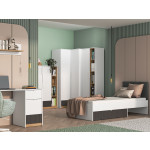 Kolekcja mebli "TORINO" to meble młodzieżowe o nowoczesnym designe. Korpusy mebli wykonane z płyty laminowanej wysokiej jakości odpornej na zarysowania, wilgoć i wysoką temperaturę, wykończone obrzeżem ABS odpornym na uderzenia i wilgoć. Fronty wykonane z płyty białej w połączeniu z MDF grafitowym matowym z frezowaniem. Kolekcja mebli obejmuje róznorodne rodzaje mebli. Meble posiadają zawiasy z cichym domykiem. Szuflady z pełnym wysuwem oraz zwiększoną ładownością dzięki wzmocnieniu dna. Meble z kolekcji TORINO to prostota, minimalizm i funkcjonalność.